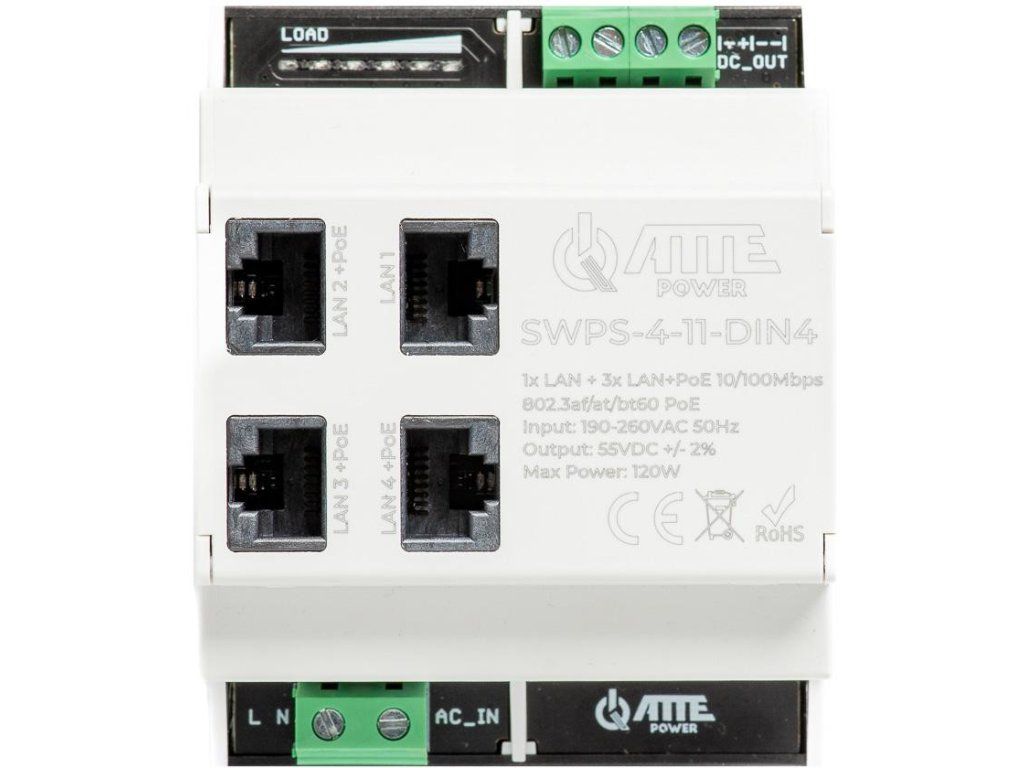4-portový prepínač PoE s integrovaným zdrojom napájania pre lištu TH35 ATTE SWPS-4-11-DIN4