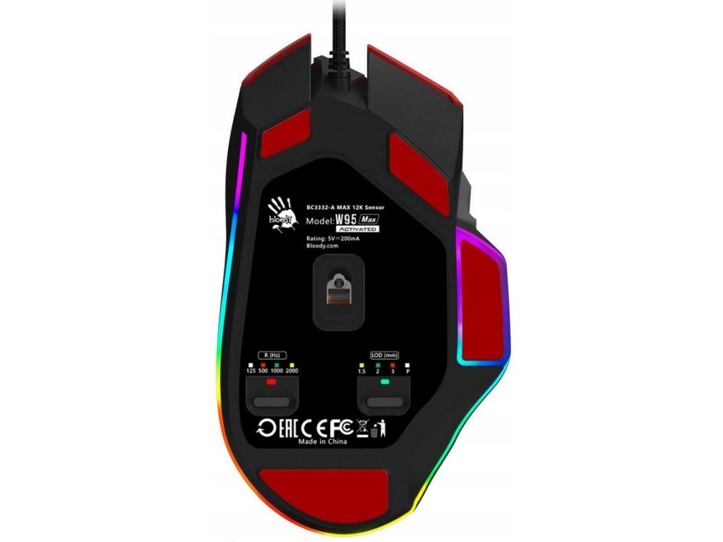 - Prepínanie medzi režimami : herná myš A4Tech Bloody W95 Max USB športové červené ponuky 4 rôzne režimy LOD (vzdialenosť zdvihu) umožňuje prispôsobiť polohu myši vo vzťahu k podložke. To znamená, že používateľ príslušenstva si môže vybrať, ako vysoko je potrebné myš zdvihnúť, aby sa prestala sledovať. To umožňuje lepšie ovládanie myši a presnosť v hrách.