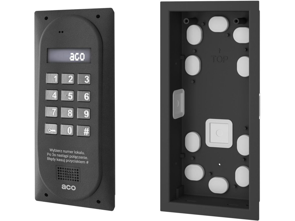 Interkomové panely Aco sa vyznačujú rozmermi 206 mm x 88 mm. Montáž môže byť zapustená alebo povrchová, v závislosti od vašich preferencií a výberu vhodného rámu. Vďaka použitiu vysokokvalitných materiálov a moderných technológií si naše zariadenia zachovávajú vysokú účinnosť po mnoho rokov a poskytujú obyvateľom pohodlie pri každodennom používaní.