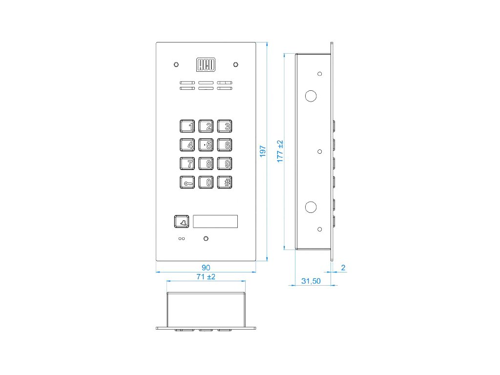- Popis : Digitálny interkom s kódovým zámkom, čítačkou kľúčov a 1 tlačidlom