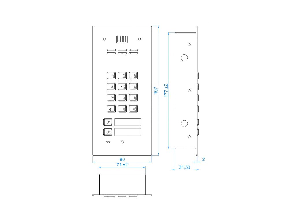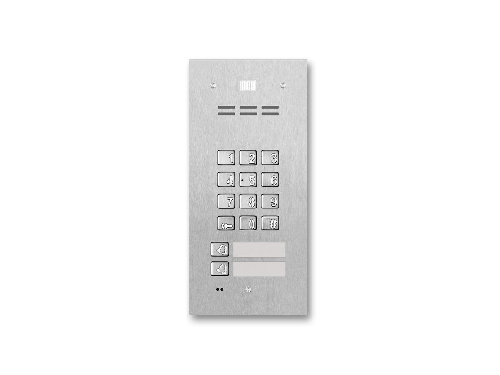 - Popis : Digitálny interkom s kódovým zámkom, čítačkou kľúčov a 2 tlačidlami