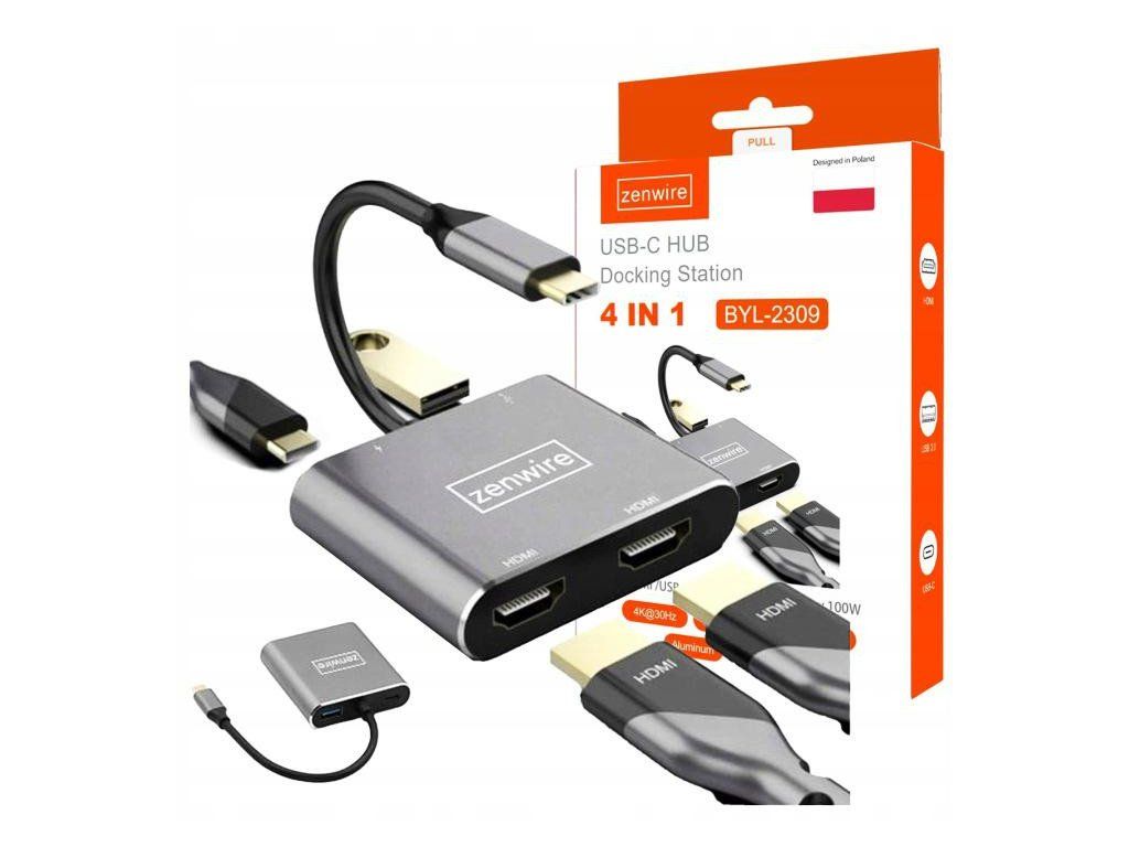 ADAPTÉR USB-C 4 v 1 ZENWIRE HUB s portami: bYL-2309 Zenwire BYL-2309: 2x HDMI 4K, USB 3.0, Power Delivery 87W
