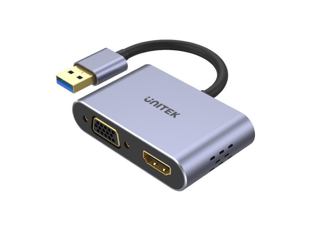 Adaptér Unitek USB-A na HDMI a VGA, FullHD