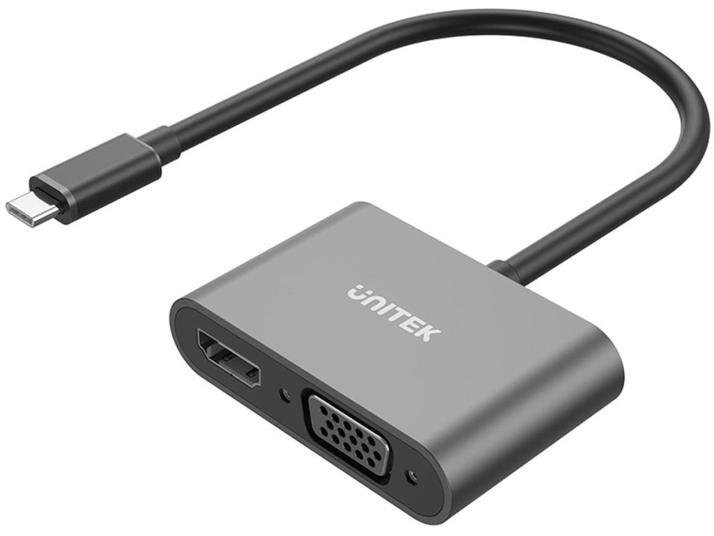 Unitek V1168A je adaptér USB-C na VGA a HDMI. Konektor VGA umožňuje prenos videa v rozlíšení Full HD 1080P@60Hz. Konektor HDMI prenáša video UHD 4k*2k@60Hz.