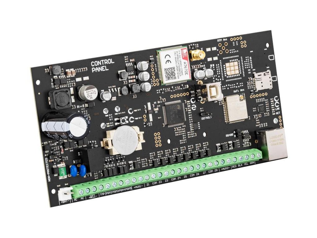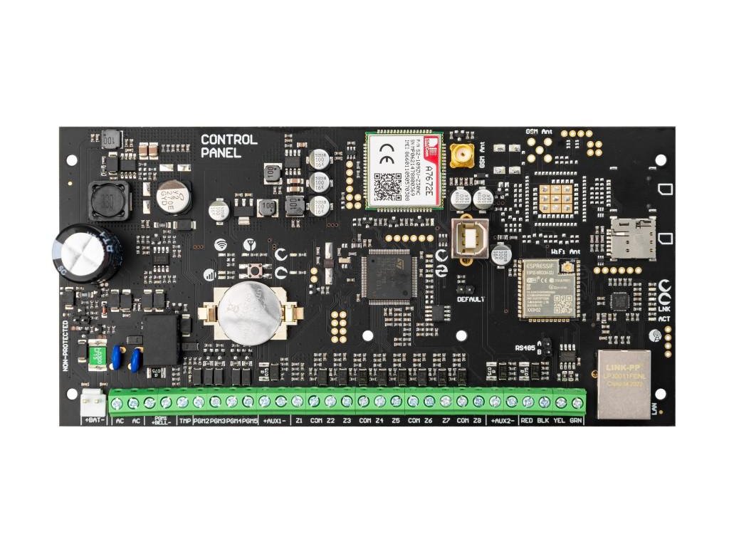 Doska má 8 vstupov pod dohľadom, ktoré možno rozšíriť na maximálne 80, a 5 plne programovateľných výstupov vrátane jedného s relé, ktoré chráni systém pred možnými pokusmi o sabotáž.