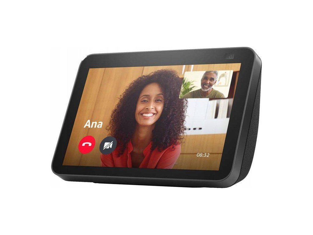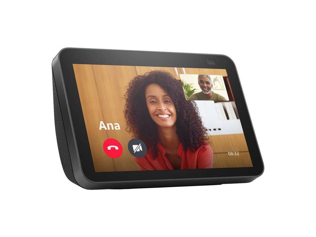 Echo Show 8 druhej generácie s 8-palcovým dotykovým displejom s HD rozlíšením, 13 MP fotoaparátom, dvojpásmovým pripojením Wi-Fi, rozhraním Bluetooth, štyrmi mikrofónmi a dvoma 2-palcovými ovládačmi rozšíri tradičné funkcie služby Alexa.