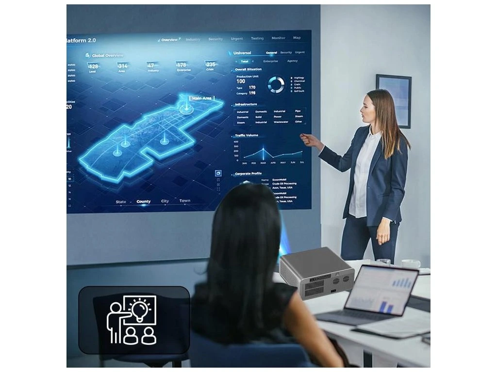 Projektor dokáže premietať obraz s uhlopriečkou až 250 palcov, takže kdekoľvek vytvorí efekt kina.