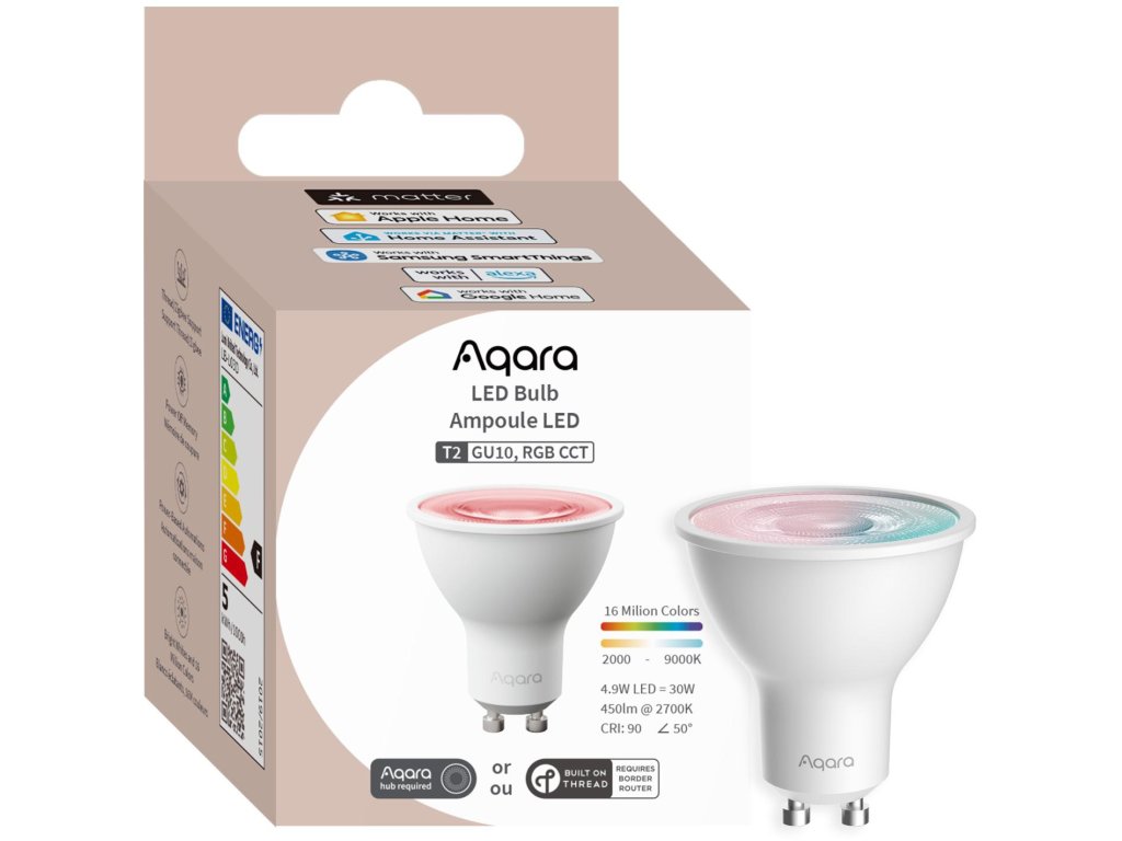 Žiarovka Aqara LED T2 GU10 RGB poskytuje pôsobivé možnosti ovládania svetla. S jasom 450 lm a nastaviteľnou teplotou farieb od 2000K do 9000K môžete vytvoriť teplú, útulnú atmosféru aj jasné, chladné svetlo na prácu. Okrem toho 16 miliónov farieb umožňuje kreatívne experimentovať s osvetlením, vďaka čomu je táto žiarovka ideálnou voľbou pre každú príležitosť - od relaxácie až po večierky. Vysoký index podania farieb (Ra>90) zaručuje, že farby vo vašom interiéri budú pôsobiť prirodzene a živo.