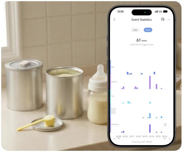 - Monitorovanie nádob na krmivo pre domáce zvieratá - Snímač zaznamenáva každé otvorenie a uľahčuje tak kontrolu frekvencie kŕmenia, čím pomáha predchádzať prekrmovaniu vášho domáceho maznáčika.