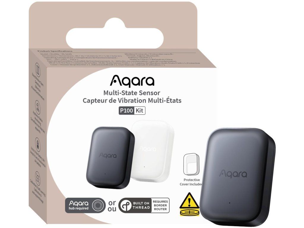 Súprava viacstavového snímača Aqara P100 je kompaktný viacúčelový snímač pohybu a polohy, ktorý zvyšuje bezpečnosť a pohodlie v inteligentnej domácnosti. Monitoruje otváranie dverí a okien, vibrácie, nakláňanie a náhodný pád predmetov a vďaka podpore štandardov Zigbee, Thread a Matter bez problémov spolupracuje s populárnymi systémami inteligentnej domácnosti.