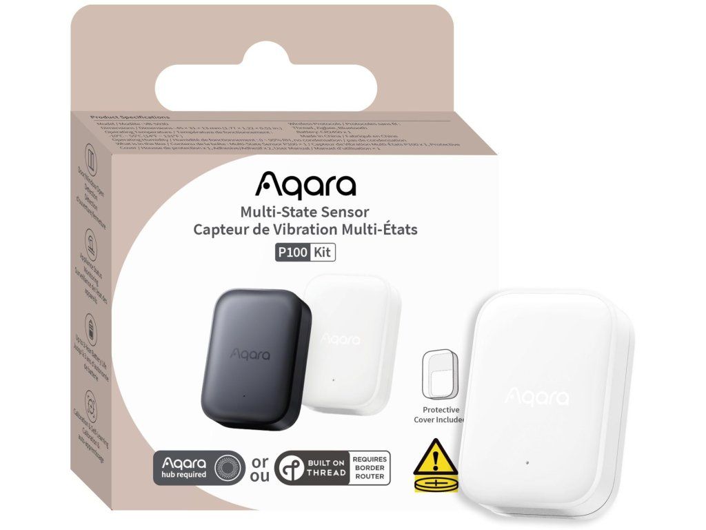 Súprava viacstavového snímača Aqara P100 je kompaktný viacúčelový snímač pohybu a polohy, ktorý zvyšuje bezpečnosť a pohodlie v inteligentnej domácnosti. Monitoruje otváranie dverí a okien, vibrácie, nakláňanie a náhodný pád predmetov a vďaka podpore štandardov Zigbee, Thread a Matter bez problémov spolupracuje s populárnymi systémami inteligentnej domácnosti.