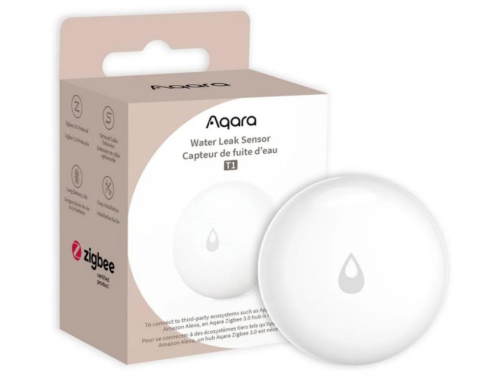 - So súborom inteligentných domácich produktov Aqara môžete konfigurovať takéto automatizácie s podporou senzora Senzor úniku vody Aqara T1 . Napríklad pri zistení úniku môže senzor okamžite vydať príkaz Inteligentná zástrčka Aqara zatvorte vodovodný ventil!