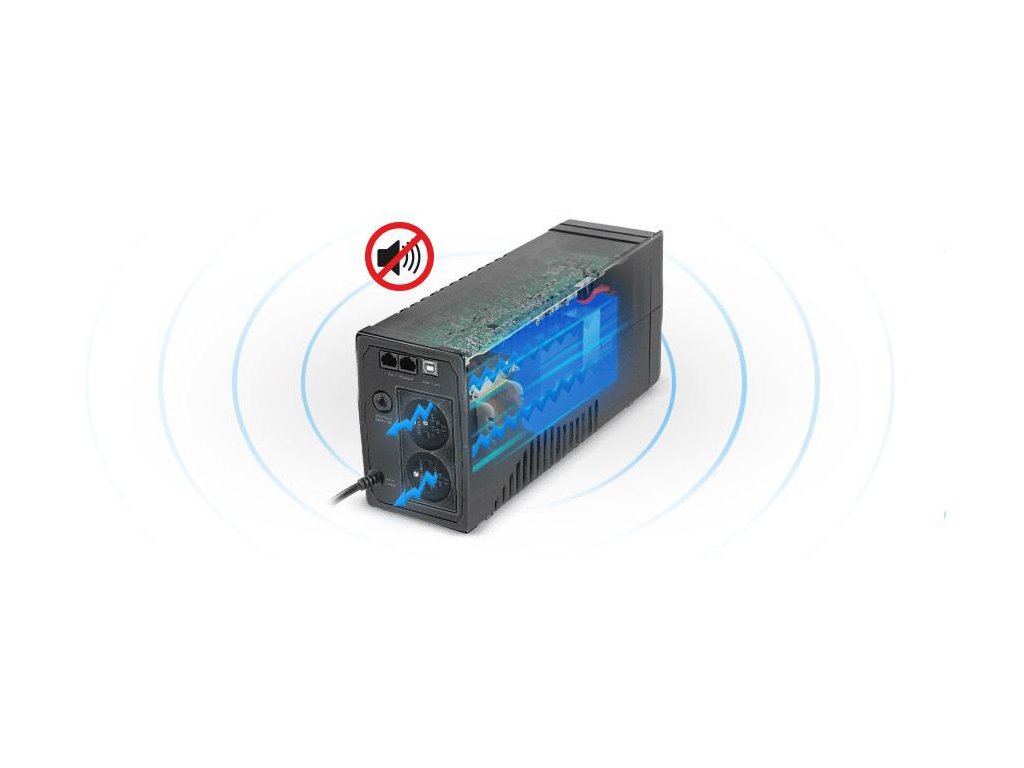 V systémoch neprerušiteľného napájania je prevádzka UPS v režime batérie spojená s hlukom, ktorý sa ozýva každých niekoľko sekúnd. Je bežné, že UPS sú umiestnené vedľa televízorov, počítačov a pracovných stolov, ktoré pri prevádzke na batériu môžu v domácnosti spôsobovať nespokojnosť.