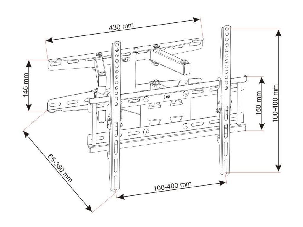 Držiak je kompatibilný s televízormi prispôsobenými montážnemu štandardu VESA maximálna rozteč skrutiek 400 x 400 mm .