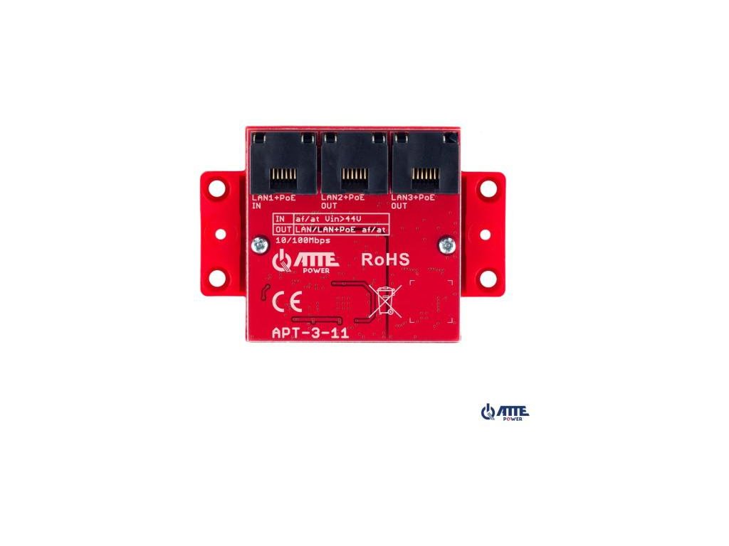 Séria APT (Atte Power Tree) poskytuje kompatibilitu so štandardmi IEEE 802.3.at/af ako prijímače napájania PoE aj na všetkých výstupných portoch. Po pripojení zariadenia k portu 2 alebo 3 sa identifikuje prijímač, a ak ide o zariadenie napájané PoE, zapne sa napájanie na porte.