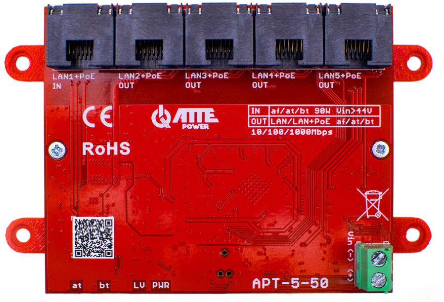 | Počet portov PoE OUT | 4 (LAN2-LAN5: PoE++ 802.3af/at/bt typ3 + pasívne PoE) |