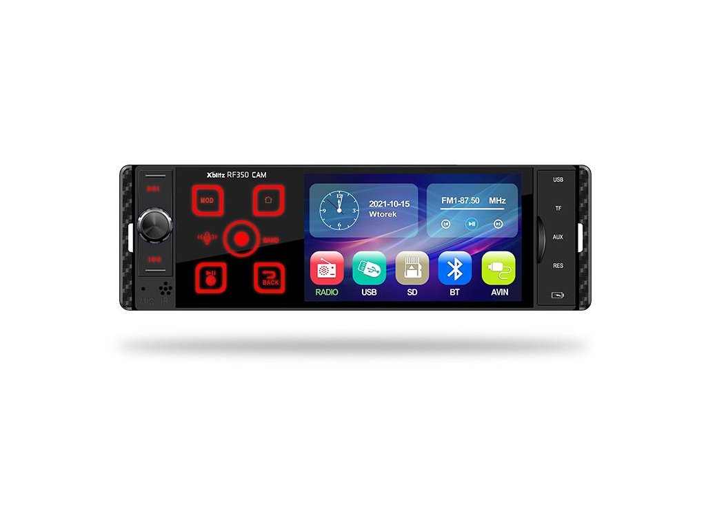 Xblitz RF350 CAM je inovatívna multimediálna stanica, ktorá kombinuje pokročilé funkcie s univerzálnou montážnou veľkosťou 1 DIN, ideálnou pre staršie modely automobilov. Rádio je vybavené veľkým,jasný a dotykový LCD displej s uhlopriečkou 4,1 palca, ktorý umožňuje pohodlné ovládanie všetkých funkcií gestami prstov. Vďaka intuitívnemu grafickému rozhraniu je navigácia pri prehrávaní hudby, prijímanie hovorov alebo zobrazenie spätnej kamery rýchle a pohodlné.