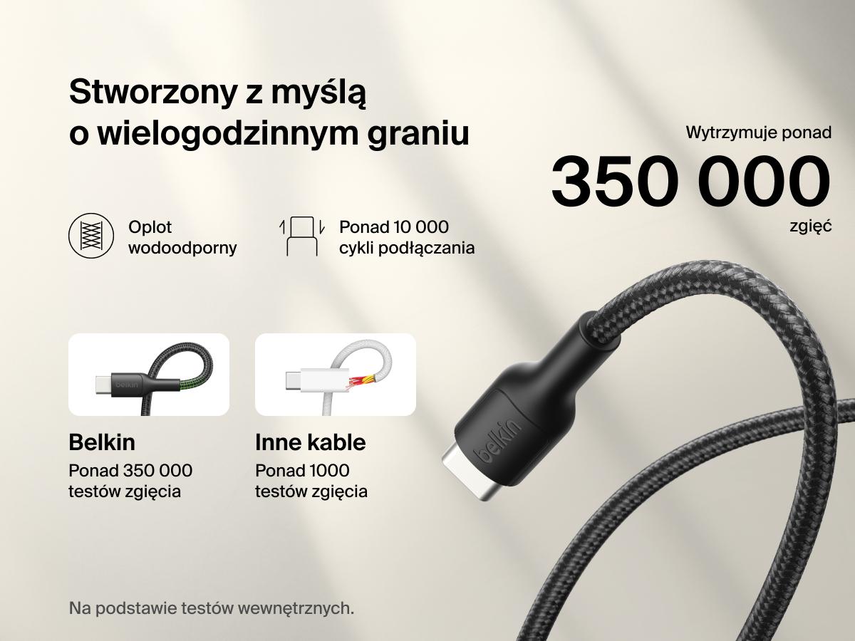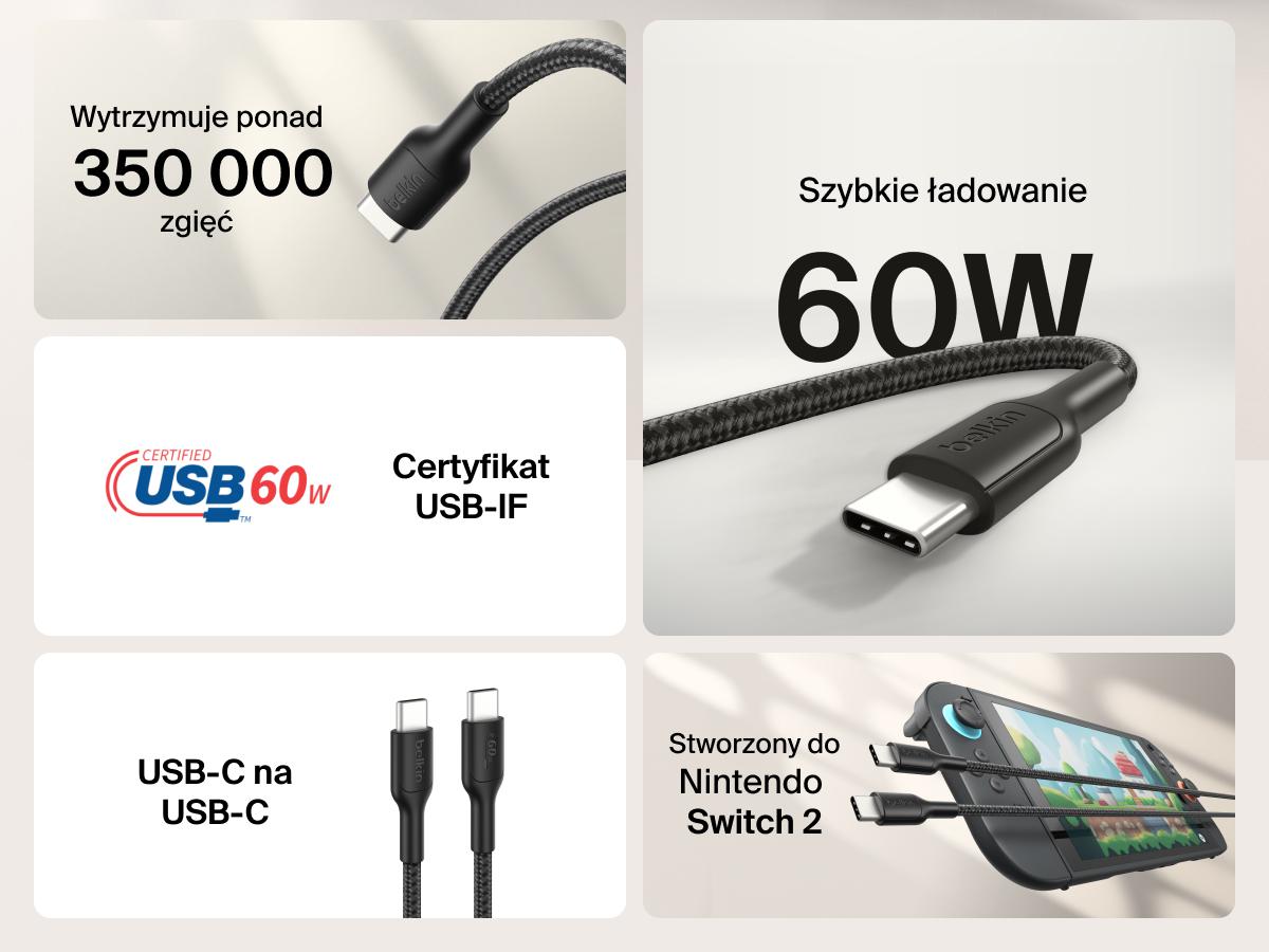 Belkin USB-C / USB-C kábel 60W 2 m pre Nintendo Switch2 opletený kábel, čierny
