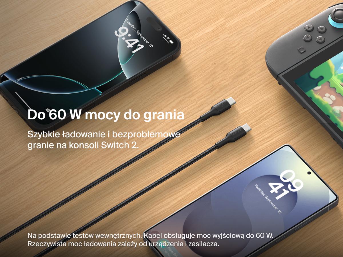 - Podpora 60W rýchleho nabíjania: Technológia USB-C Power Delivery umožňuje rýchle a bezpečné nabíjanie konzol, notebookov a ďalších zariadení.