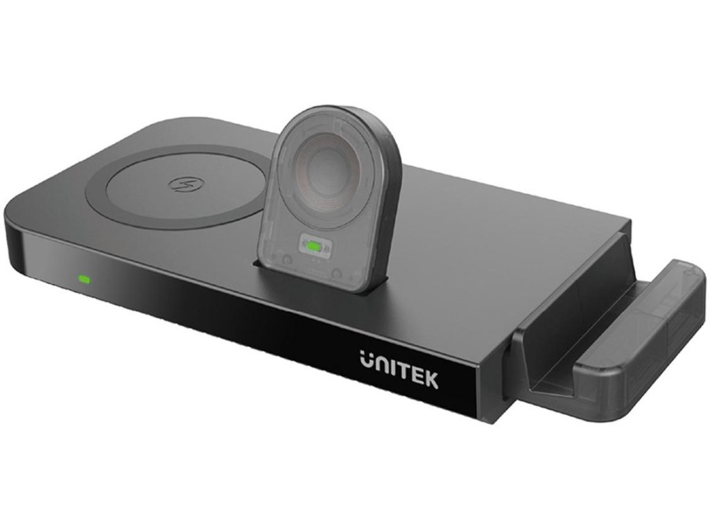 Unitek MagMighty COMBO 6 je kompaktné zariadenie s obrovskými možnosťami. Môže slúžiť ako nabíjacia stanica alebo stojan na smartfón. Magnetickú nabíjaciu stanicu na výsuvnom podstavci možno použiť ako nabíjačku pre slúchadlá AirPods.