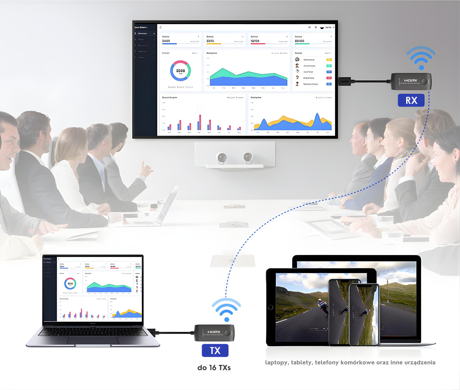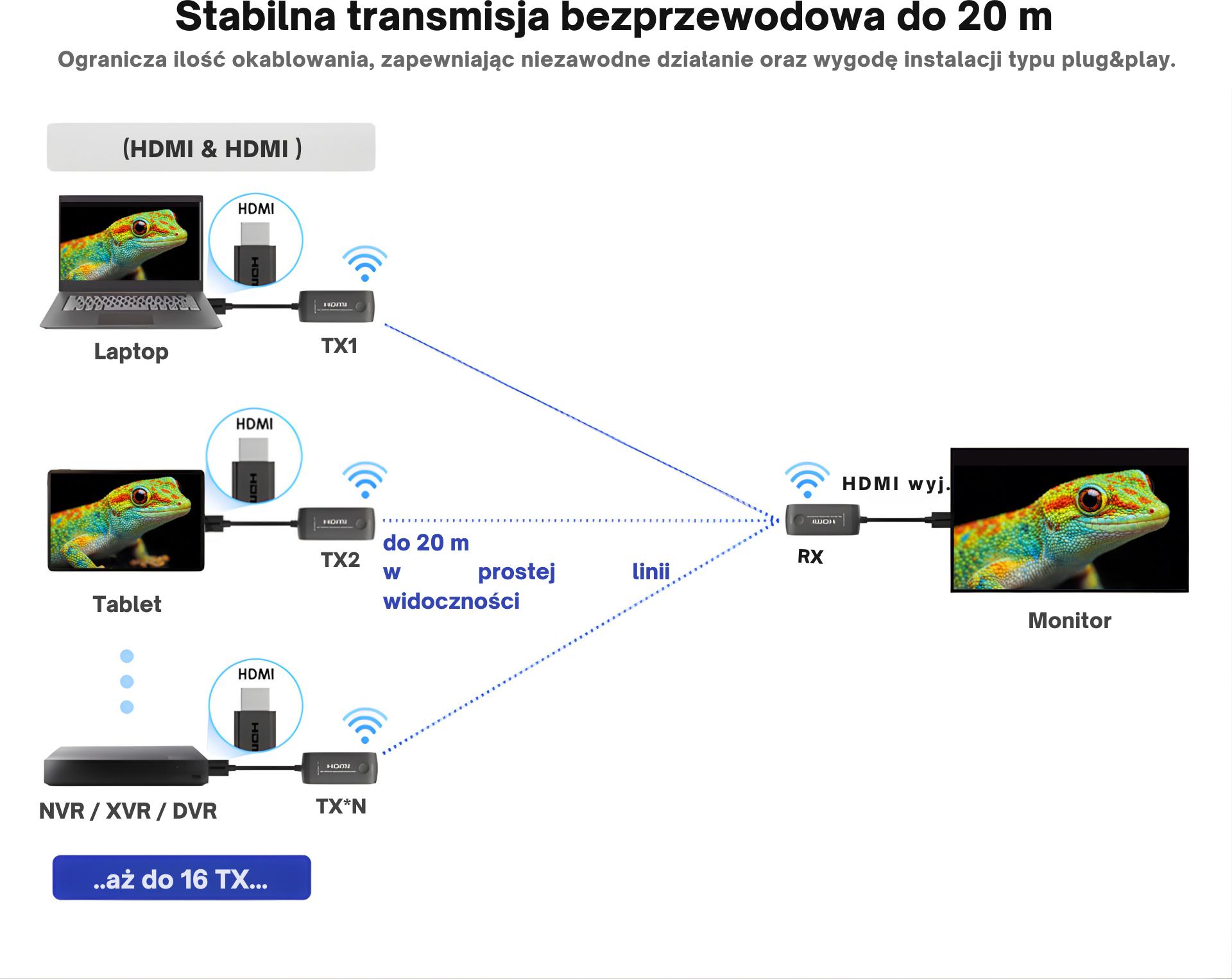 Kompaktný bezdrôtový extender HDMIktorý umožňuje prenos kvalitného obrazu4K@60 Hz s rovnomerným16 vysielačov na jeden prijímač. Ideálne pre zasadacie miestnosti, prezentácie, výstavy a multimediálne aplikácie.
