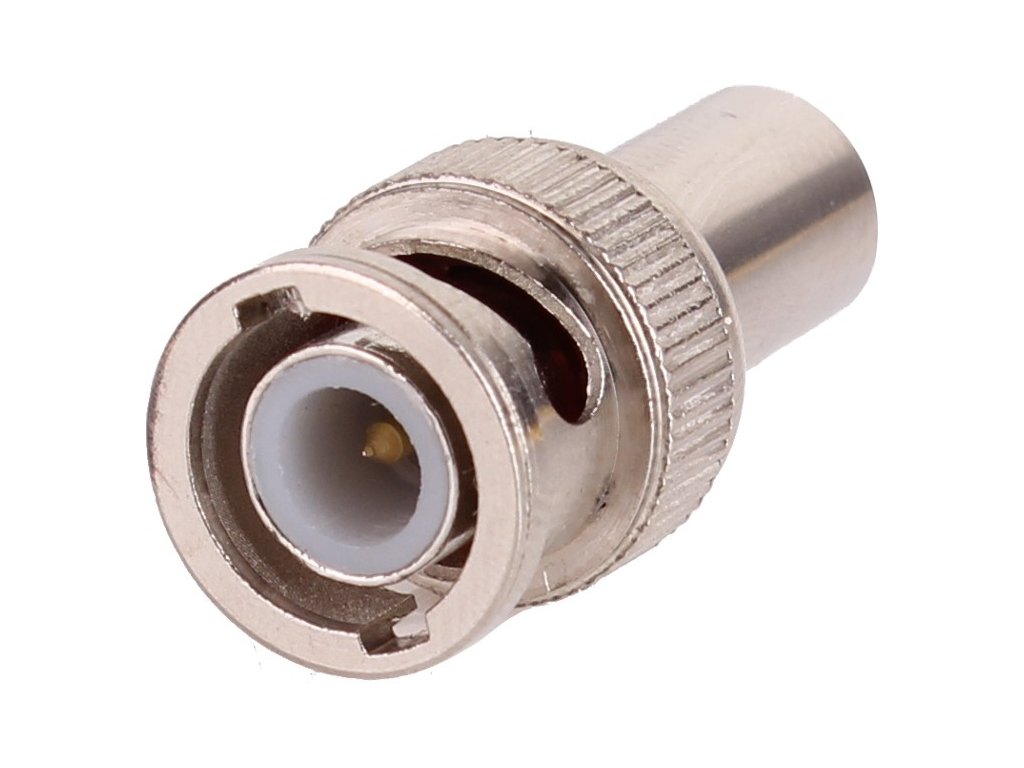 Monolitický konektor BNC z poniklovanej mosadze. Typ použitého materiálu zaručuje absenciu korózie. Najvyššia presnosť výroby ovplyvňuje vzhľad a kvalitu spojenia. Správne krimpovanie je veľmi jednoduché a zaručuje správne a stabilné spojenie na dlhú dobu. Spojka má dva plné (360°) krúžky, ktoré sa v dôsledku procesu stláčania spojky (pozdĺžne, axiálne stlačenie) vydúvajú dovnútra. Rozmery týchto krúžkov sú také, aby po stlačení konektora zvierali pneumatiku kábla dostatočne veľkou silou, ktorá znemožňuje odpojenie konektora od kábla, a dostatočne malou, aby nepoškodili konštrukciu kábla.