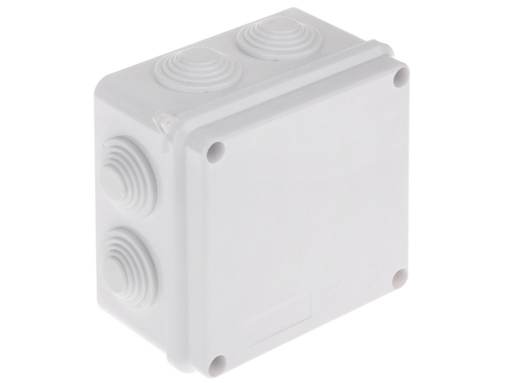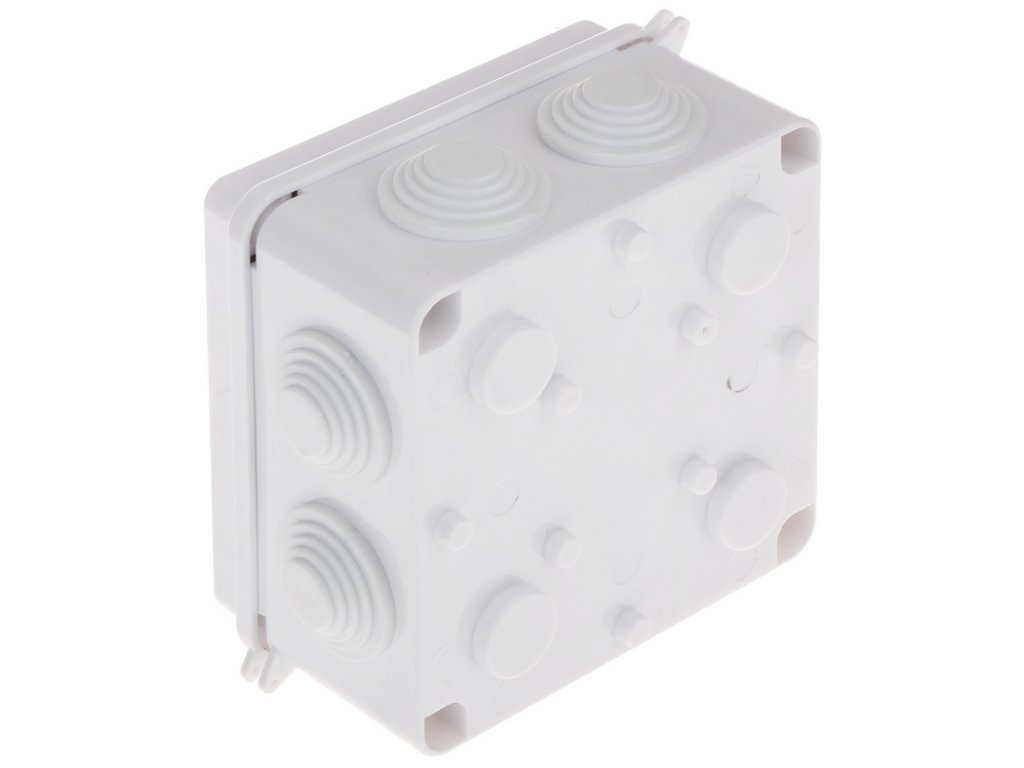 Povrchová, izolovaná, 7-priechodová rozvodná skrinka s bezzávitovými vývodkami.