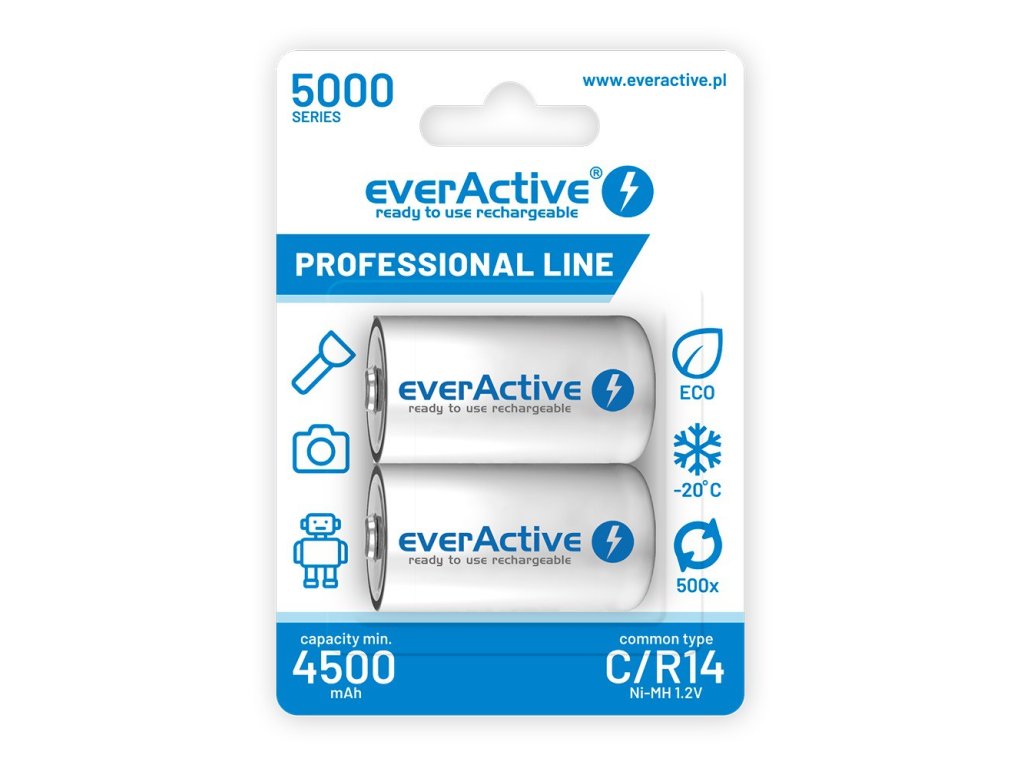 C / R14 everActive Ni-MH 5000 mAh Nabíjacie batérie Professional line (balenie 2 ks)