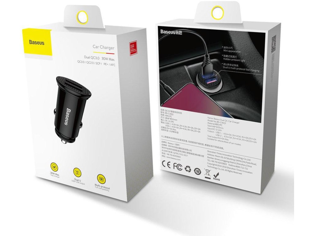 Nabíjačka do auta 2x USB QC3.0 Quick Charge 3.0 SCP AFC 30W Baseus Circular (CCALL-YD01) - vysoká kvalita