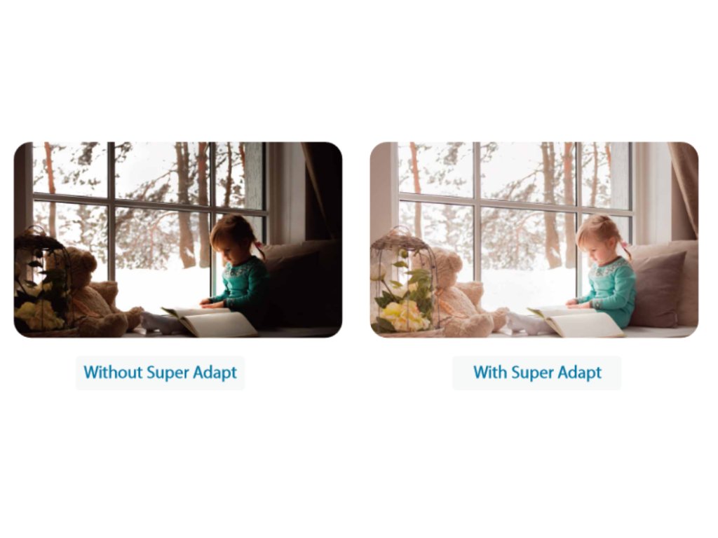 Špičková funkcia Super Adapt dokáže presne rozpoznať, či je sledovaná scéna v interiéri, exteriéri alebo či podlieha širokému dynamickému rozsahu, a automaticky upraví nastavenia obrazu tak, aby zodpovedali aktuálnej scéne. Tým sa zabráni preexponovaniu pri intenzívnom osvetlení a zlepší sa jas tmavých oblastí, aby sa zachytili jasnejšie detaily pozorovaných objektov, čo používateľom umožňuje vychutnať si lepšiu kvalitu obrazu v rôznych podmienkach monitorovania.