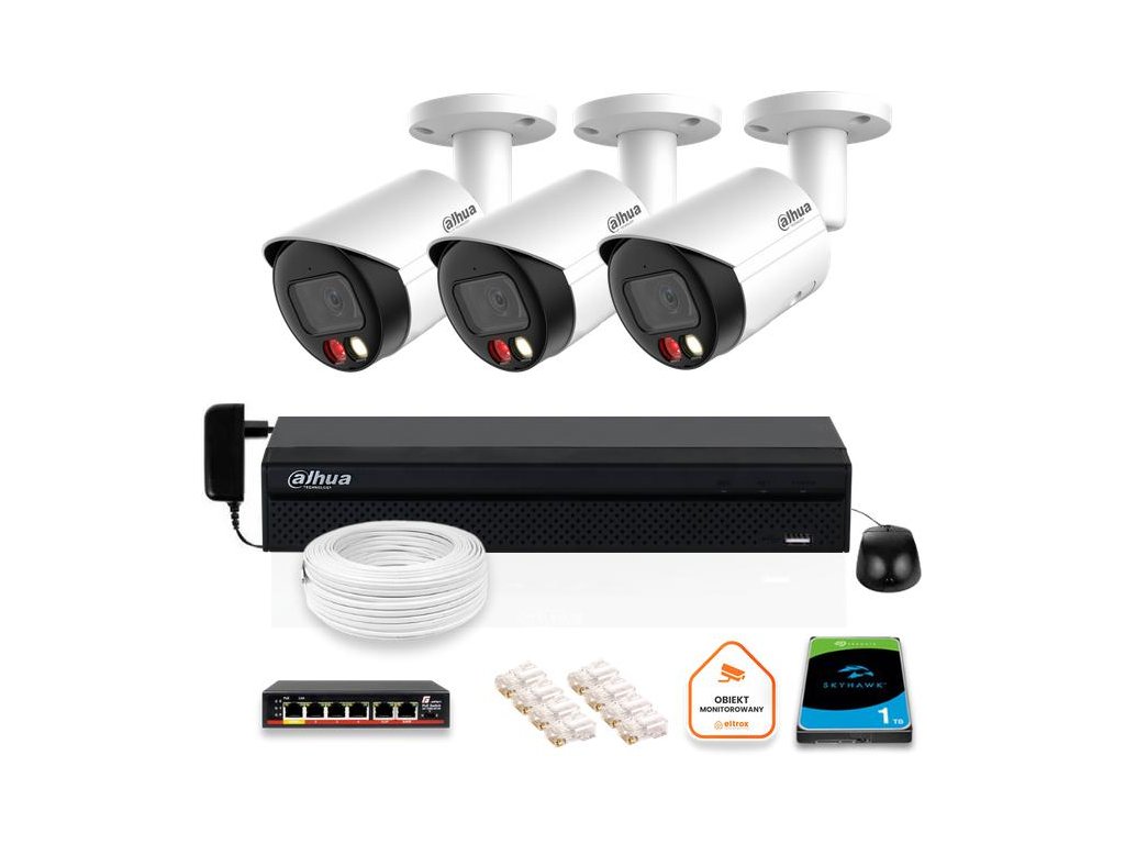 - Ponúkaná súprava videodohľadu pozostáva z4-kanálový rekordér s 1 TB pevným diskom,sada 8Mpx IP kamery a príslušenstvana zabezpečenie správneho fungovania systému.