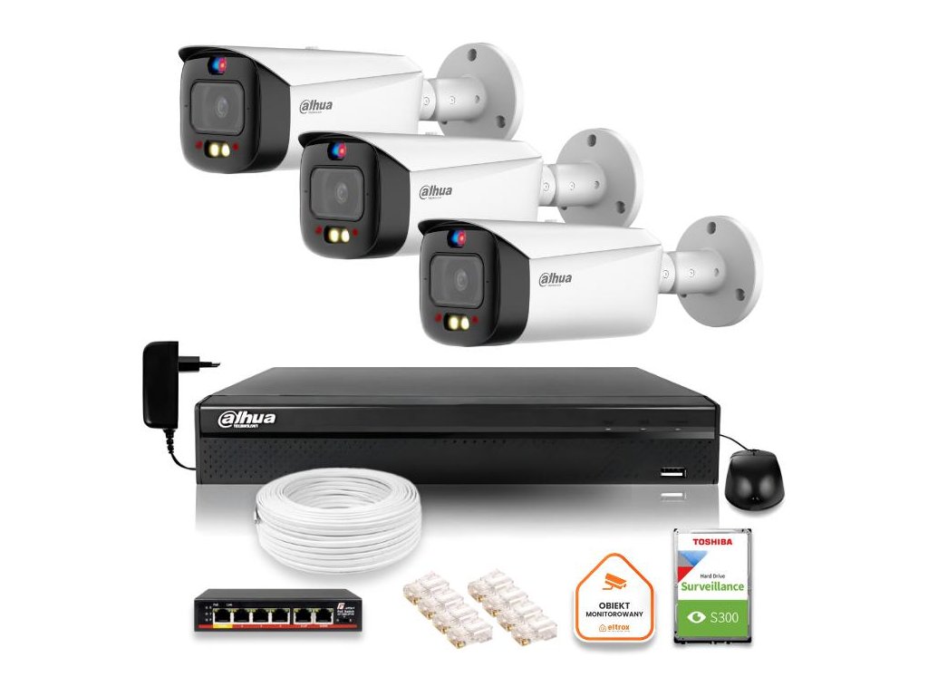 Táto súprava predstavuje najmodernejšie riešenie, ktoré kombinuje klasický záznam obrazu s aktívnym odstrašovaním narušiteľov. Kamery vybavené červenými a modrými výstražnými svetlami, zabudovanou sirénou a funkciou obojsmernej komunikácie umožňujú nielen pozorovanie, ale aj priamu reakciu na hrozby. Systém tak pôsobí preventívne a účinne odrádza neželané osoby od pokusov o vlámanie alebo vandalizmus.