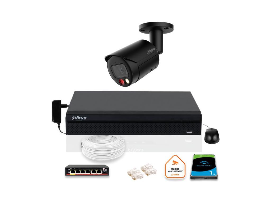 - Ponúkaná súprava videodohľadu pozostáva z4-kanálový rekordér s 1 TB pevným diskom,sada 8Mpx IP kamery a príslušenstvana zabezpečenie správneho fungovania systému.