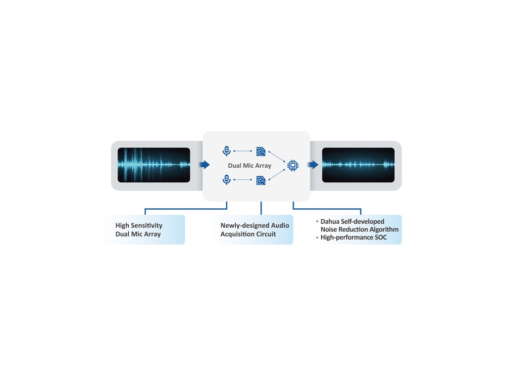 - Zariadenie Dahua VoiceCatcher znižuje šum a extrahuje počuteľné zvukové signály.