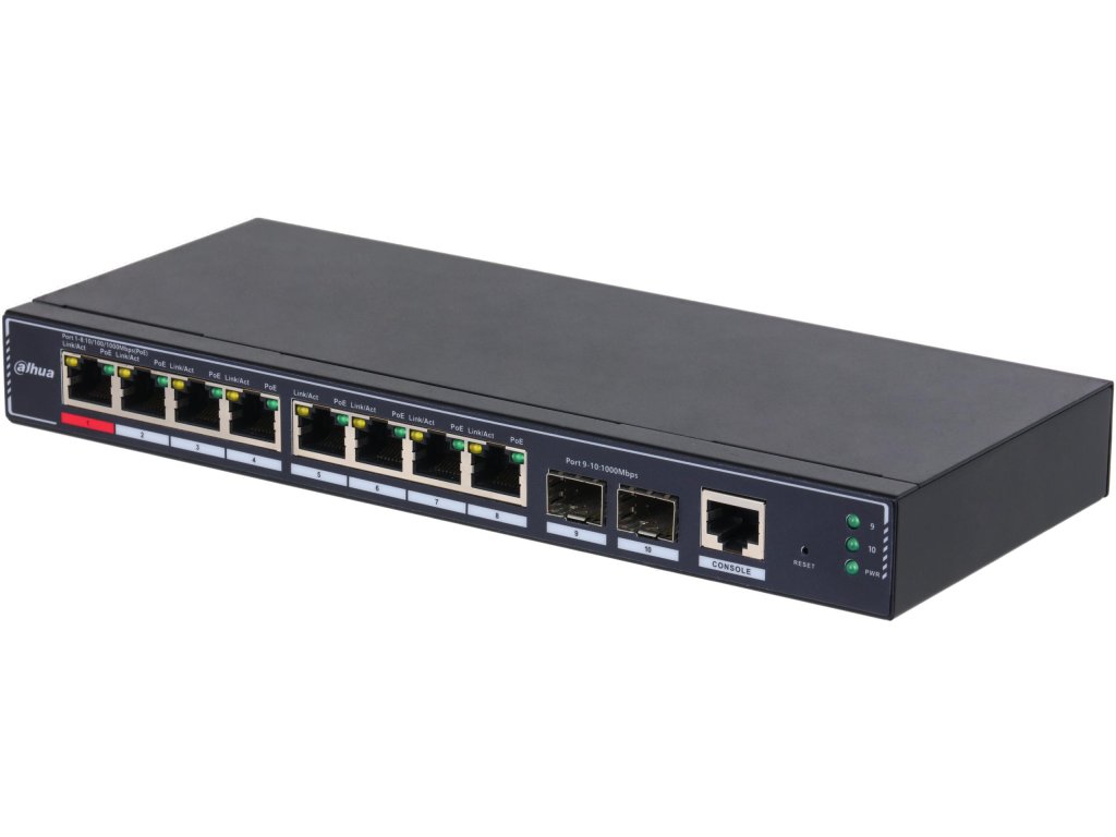 - Riadený switch na 2. vrstve s podporou PoE.