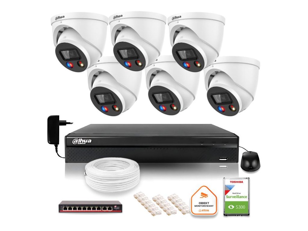 Dahua TIOC 5mpx 2K IP monitorovacia sada 6 kamier IPC-HDW3549H-AS-PV-0280B-S5 DVR s diskovou jednotkou na nepretržitú prevádzku
