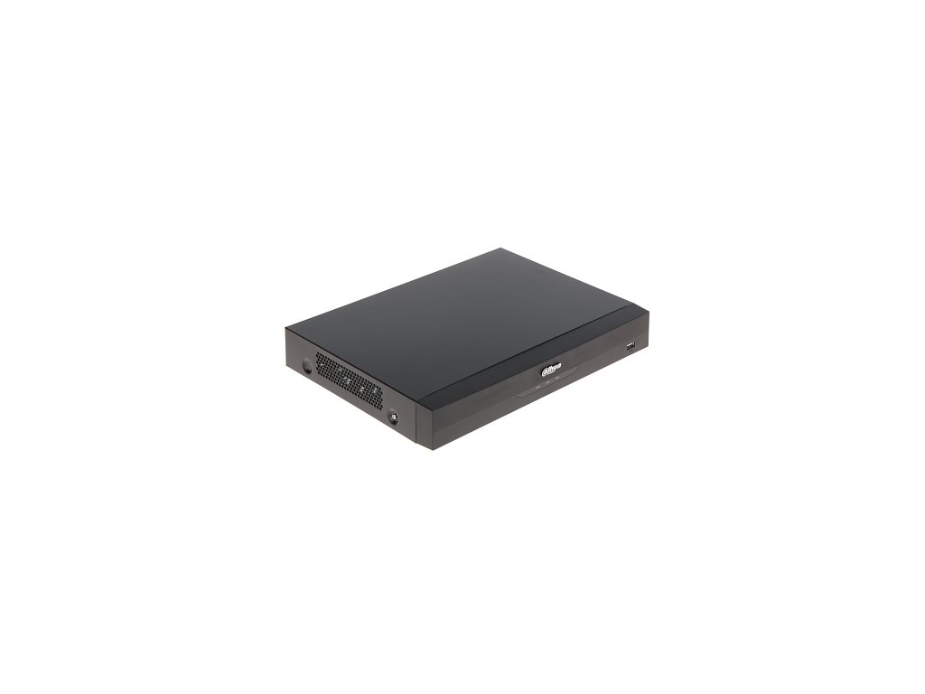 - podporuje max. 16 IP kanálov, každý s rozlíšením až 8 Mpx, AI: 2 kanály ochrany perimetra, 8 kanálov SMD Plus, 2 kanály rozpoznávania tváre, (AI analýza iba analógových kanálov), max. 1 disk SATA do 16 TB