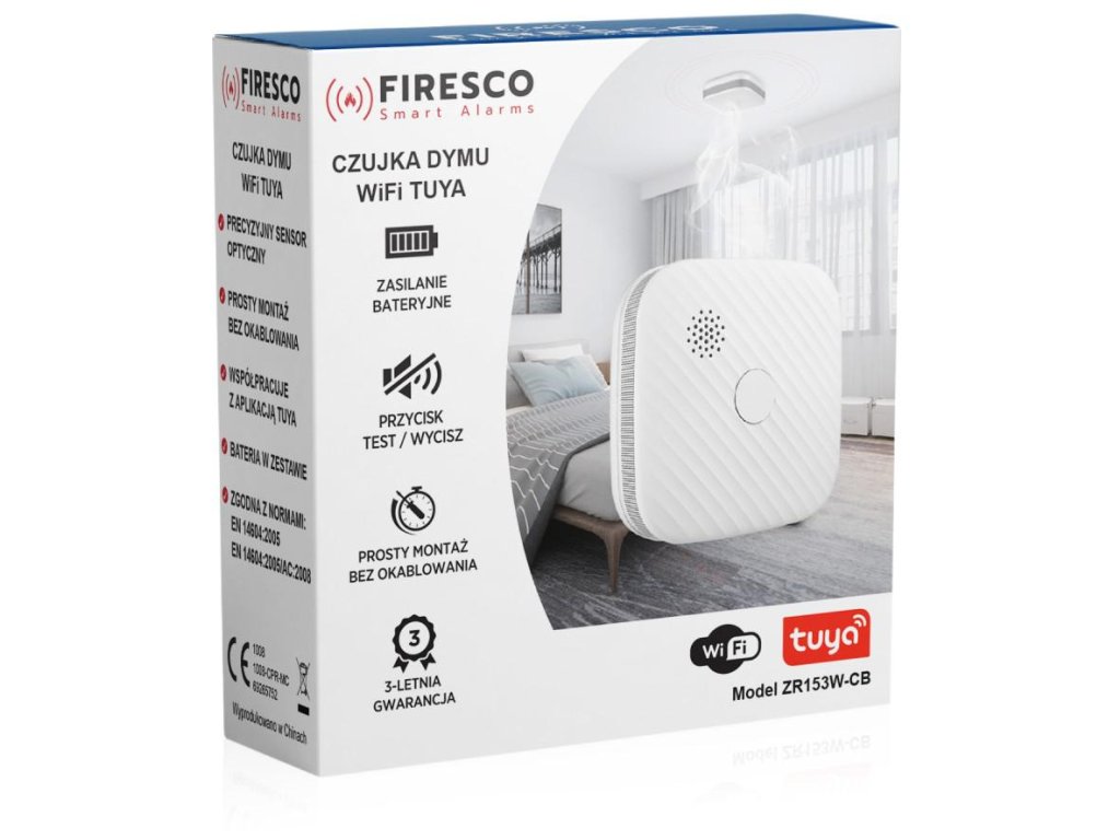 - Navyše, Firesco ZR153SW-CB má zabudovaný modul Wi-Fi na pripojenie k aplikácii Tuya alebo Inteligentný život . To vám umožní sledovať stav detektora a prijímať upozornenia v reálnom čase na smartfóne alebo inom zariadení. Získate tak istotu, že aj keď ste mimo domova, budete upozornení na možné nebezpečenstvo a budete môcť podniknúť príslušné kroky .