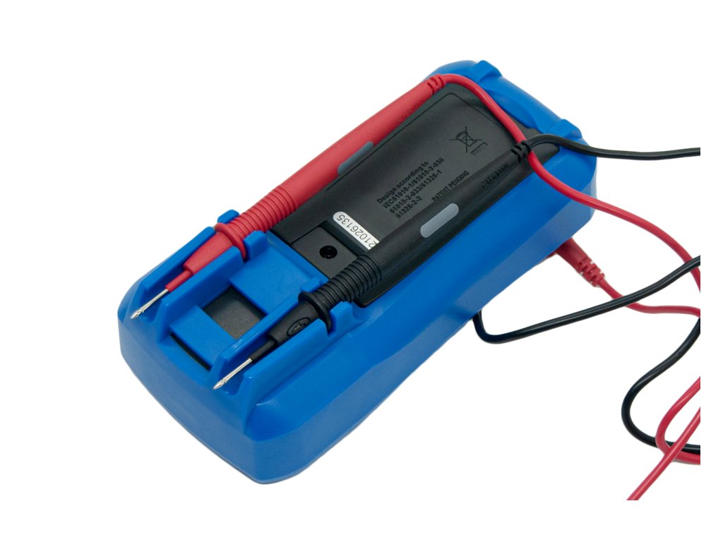 - Káble so sondami (+) a (-): meracie sondy umožňujú bezpečné a presné pripojenie k obvodom na meranie napätia alebo prúdu.