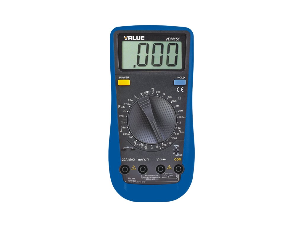 Digitálny multimeter VALUE VDM-151 je to univerzálny merací prístroj, ktorý je mimoriadne užitočný v oblasti elektroniky, elektrotechniky a v ďalších oblastiach, kde sa vyžaduje meranie elektrických a elektronických parametrov .