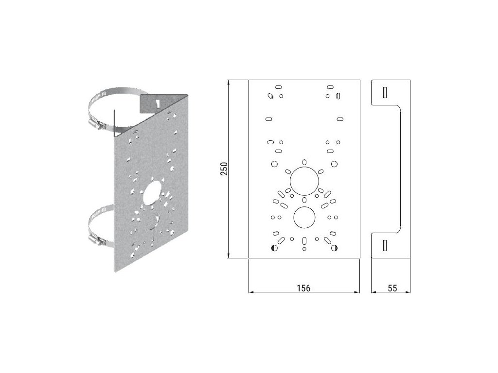 - usporiadanie otvorov v držiaku poskytuje mnoho možností montáže pre kamery Hikvision, Dahua a iné CCTV, adaptéry a rozvodné skrine