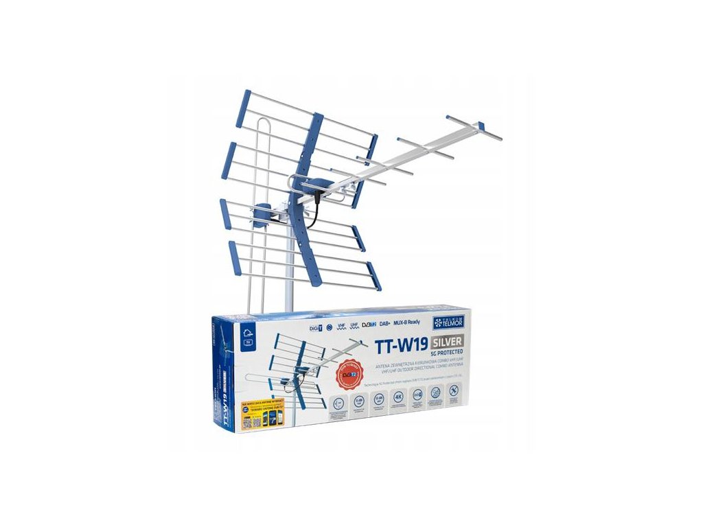 Model TT W19 Silver je anténny prijímač, ktorý ponúka príjem v pásme UHF (zisk 13 dBi) a v pásme VHF (6 dBi).
