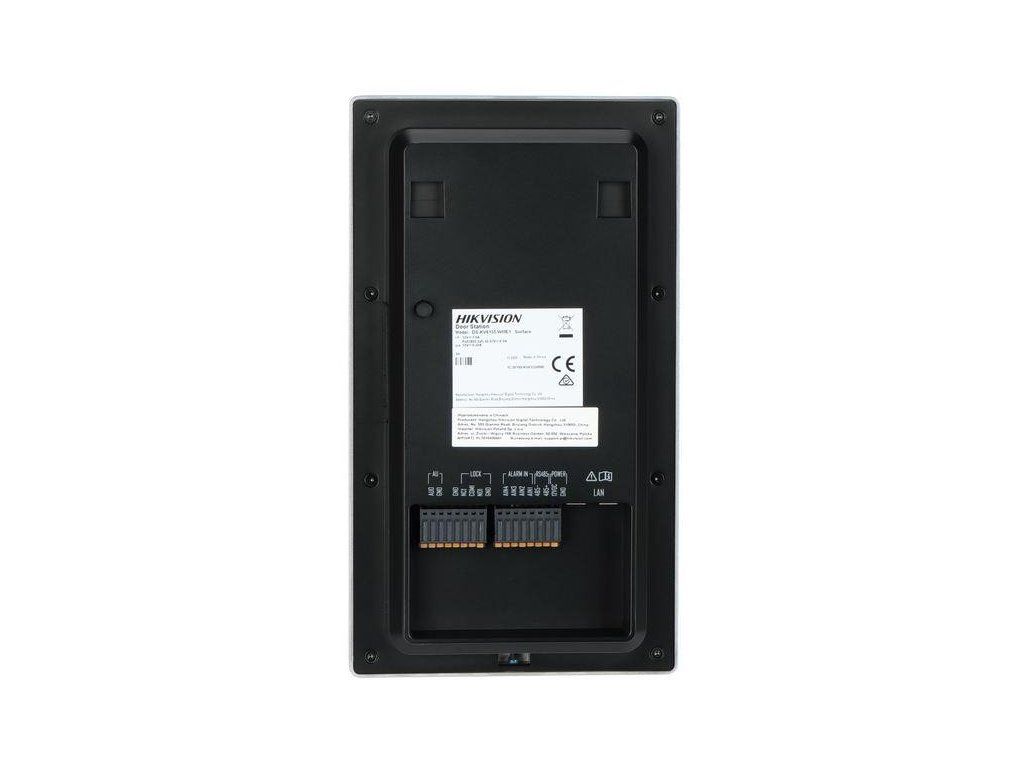 HikvisionDS-KV6133-WME1/Surface je dverová videostanica na povrchovú montáž s kamerou2 Mpx (hlavný prúd do1920 x 1080) a osvetlenieIR do 2,5 murčené na vonkajšie inštalácie (IP65, puzdro z hliníkovej zliatiny). Vstavaný mikrofón a reproduktor umožňujú hovory s potlačením šumu a ozveny a čítačka kariet podporuje až10 000 karty. Zámok sa ovláda pomocou relé (max. 30 VDC 2 A) a integračné vstupy (napr.RS-485, tlačidlo ukončenia, jazýčkový spínač). Napájanie je k dispozícii prostredníctvomPoE 802.3af alebo12 VDCa sieťová komunikácia môže prebiehať káblovo (Ethernet) alebo bezdrôtovo prostredníctvomWi-Fi 2,4 GHz; volania môžu smerovať priamo do aplikácieHik-Connect bez vnútornej stanice.
