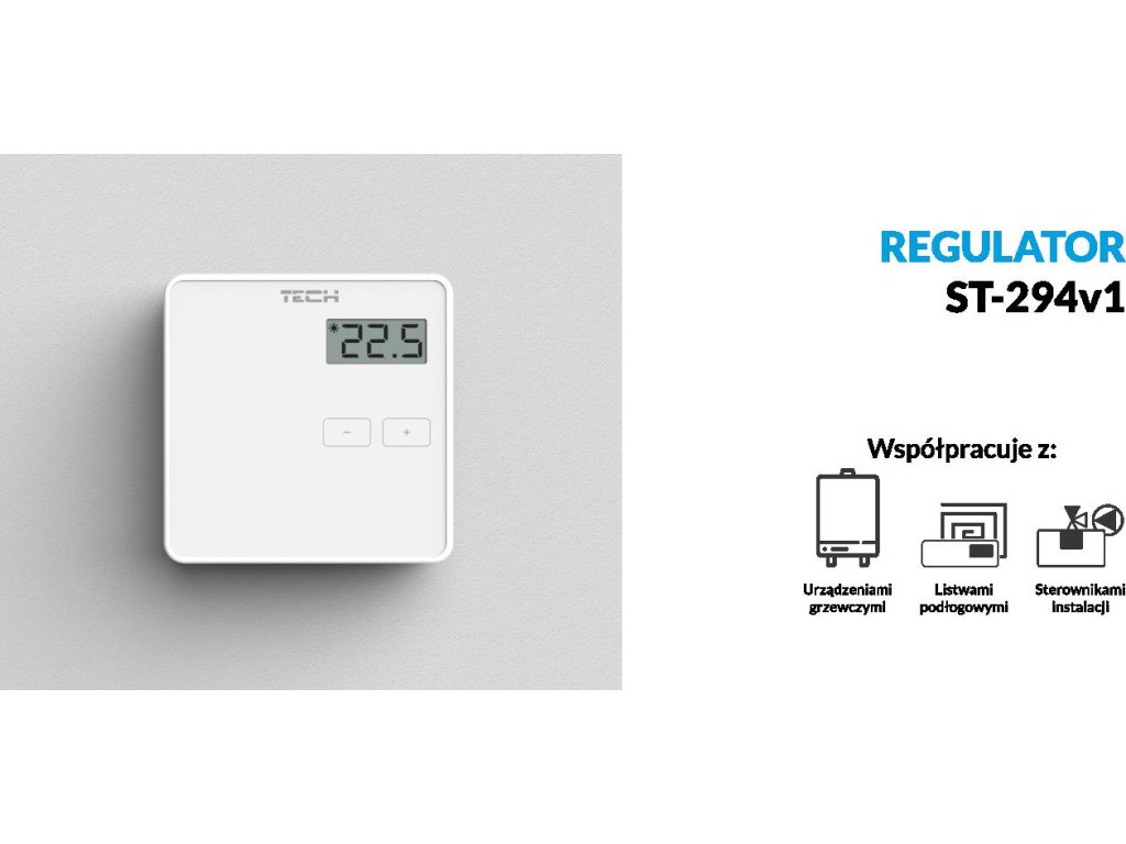 Izbový regulátor ST-294v1 je určený na ovládanie vykurovacieho alebo chladiaceho zariadenia (napr.: regulátor plynovej, olejovej alebo elektrickej pece alebo kotla).