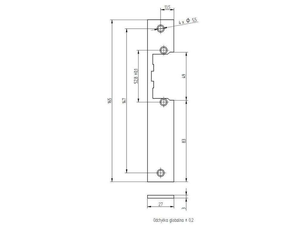 Umožňuje nahradiť elektromagnetickú západku typu R2 západkou R3, R4 alebo R5 spolu s touto rozetou bez potreby vŕtania ďalších otvorov. Vhodné pre ľavé aj pravé dvere.