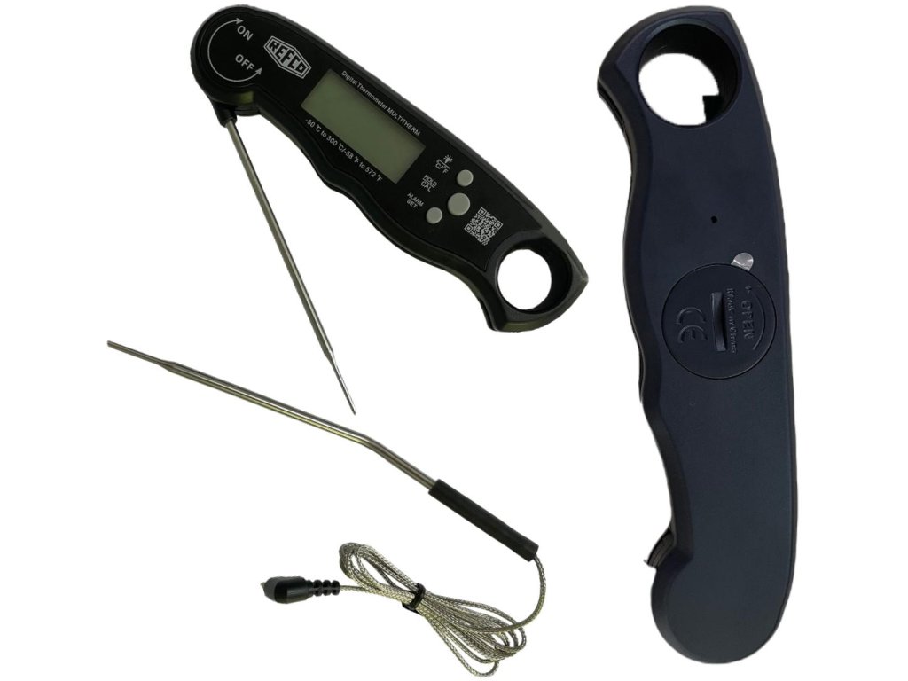 - Elektronický teplomer s prídavnou sondou Refco MULTITHERM má automatický vypínač ( sa spustí po otvorení sondy ).