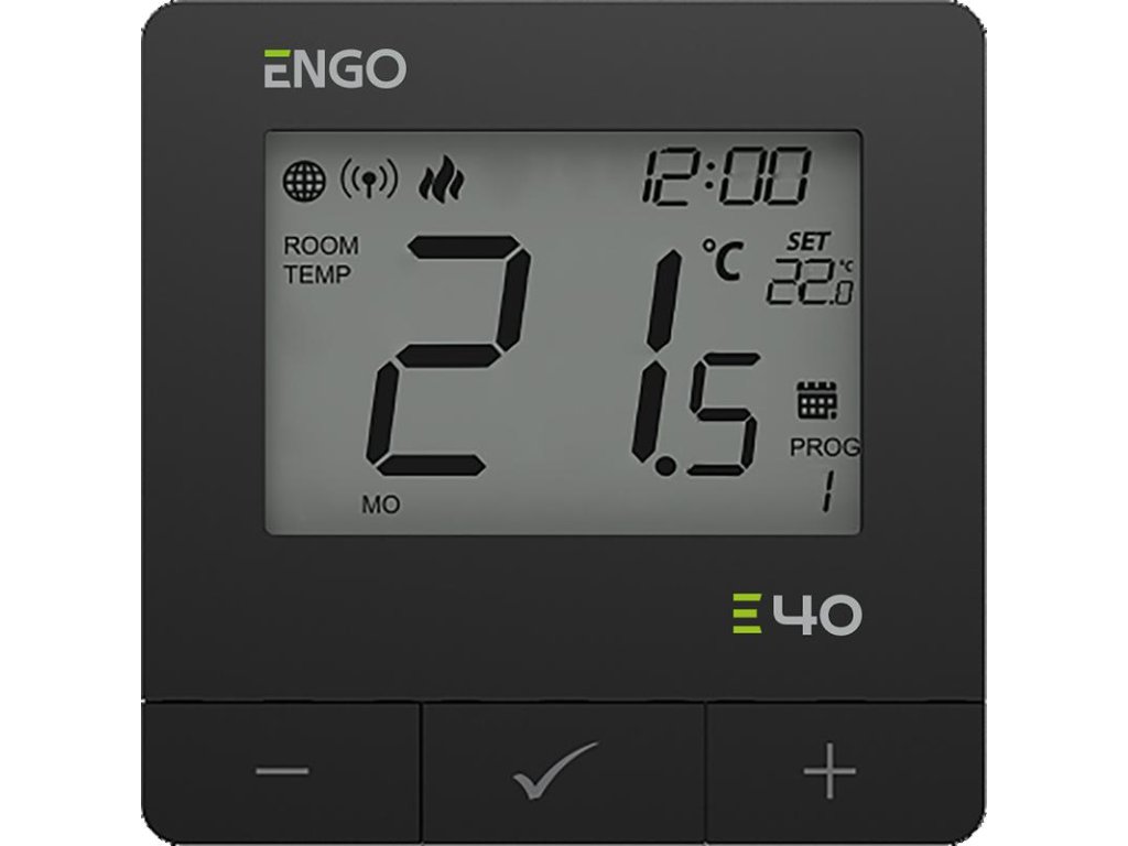 ENGO Controls E40-230B - Programovateľný, internetový regulátor teploty na povrchovú montáž ZigBee/868MHz, 230V, čierny
