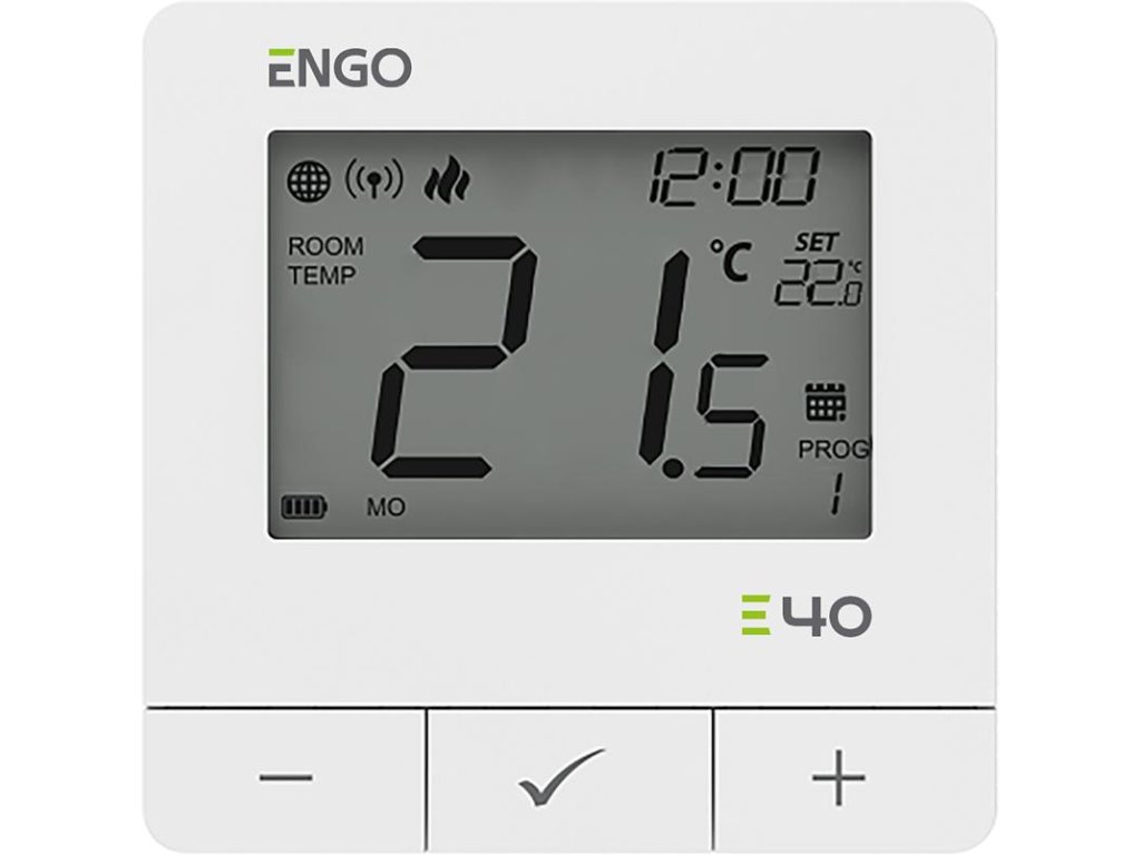 ENGO Controls E40-BATW - Programovateľný, internetový, povrchový regulátor teploty ZigBee/868MHz, napájaný batériou, biely