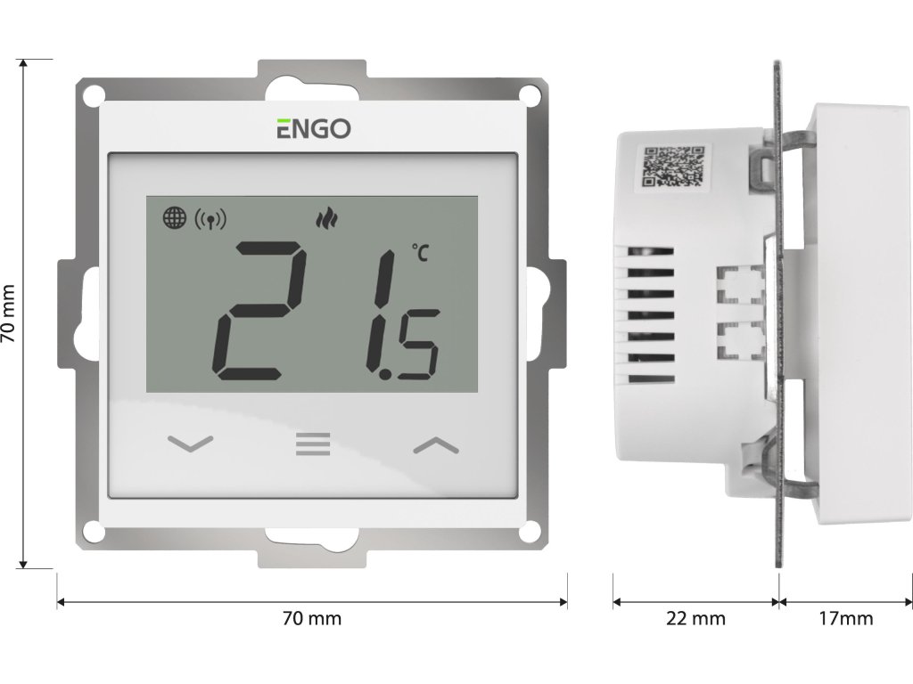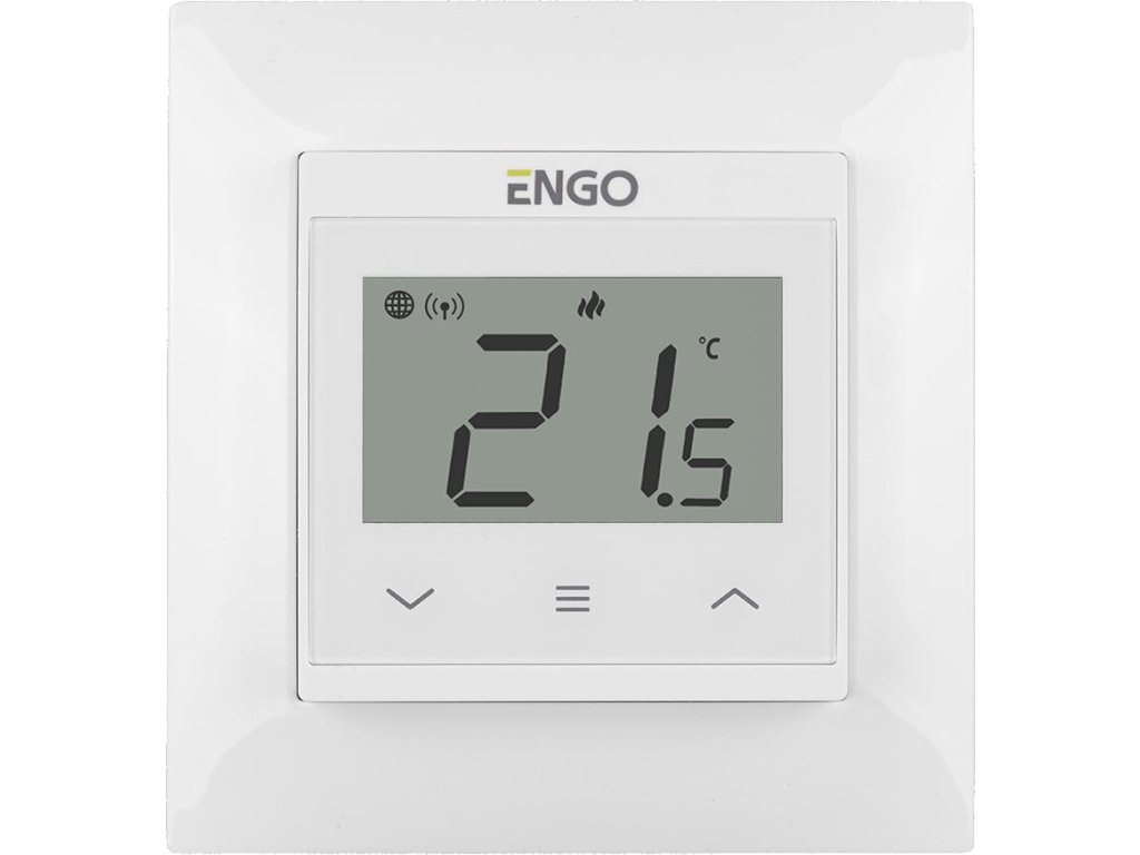 ENGO Controls E55-W - Regulátor teploty pre rám 55x55, 230V, biely, internet, Wi-Fi