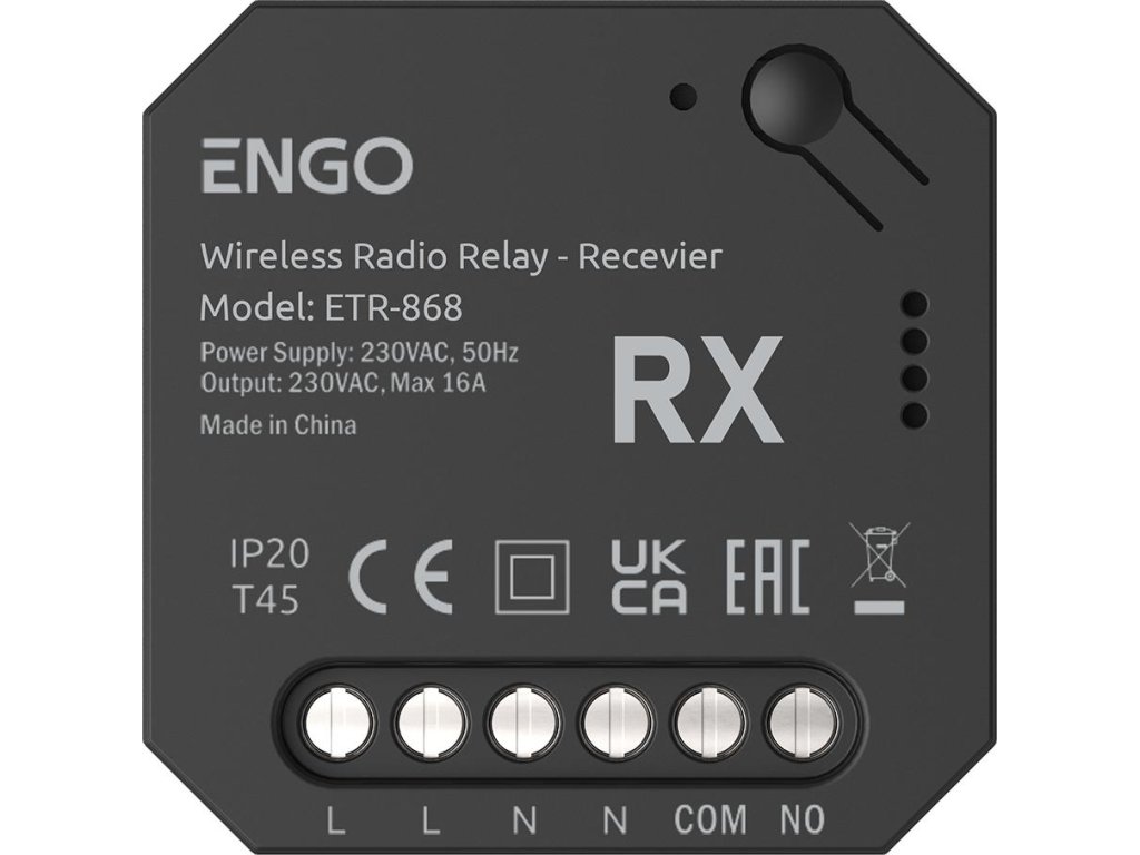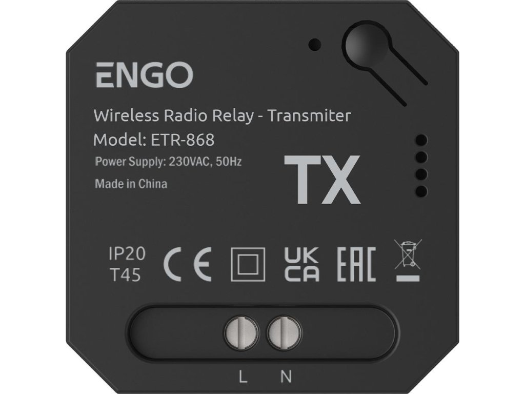 ENGO Controls ETR-868 - bezdrôtové relé EngoLink, rádiom riadený vysielač+prijímač, 868Mhz, 230V